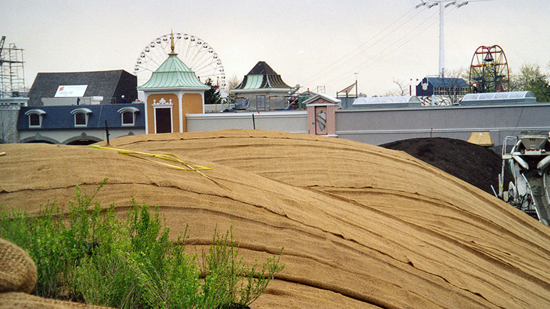 Geovegetation products are natural or synthetic mats designed to minimize the impact of natural elements such as rain, running water and wind on soils. These temporary or permanent solutions specifically chosen due to environmental constraints provide additional protection by reinforcing soil, minimizing erosion and promoting vegetation regrowth.