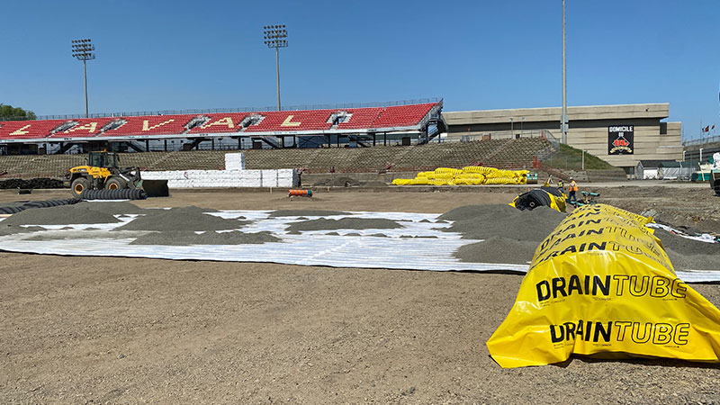 The Draintube line is a family of patented products offering geocomposites for drainage and filtration made up of regularly perforated minidrains, spaced between two or three geotextile sheets. The diameter and spacing of the minidrains as well as the geotextiles used are selected and validated for each project according to the hydraulic and geotechnical characteristics of the site. The geocomposite is thus optimized in terms of cost and performance. Draintube allows the drainage of liquids and gases in civil engineering applications, sports fields, buildings, landfill cells, polluted soils and mining and gas operations.