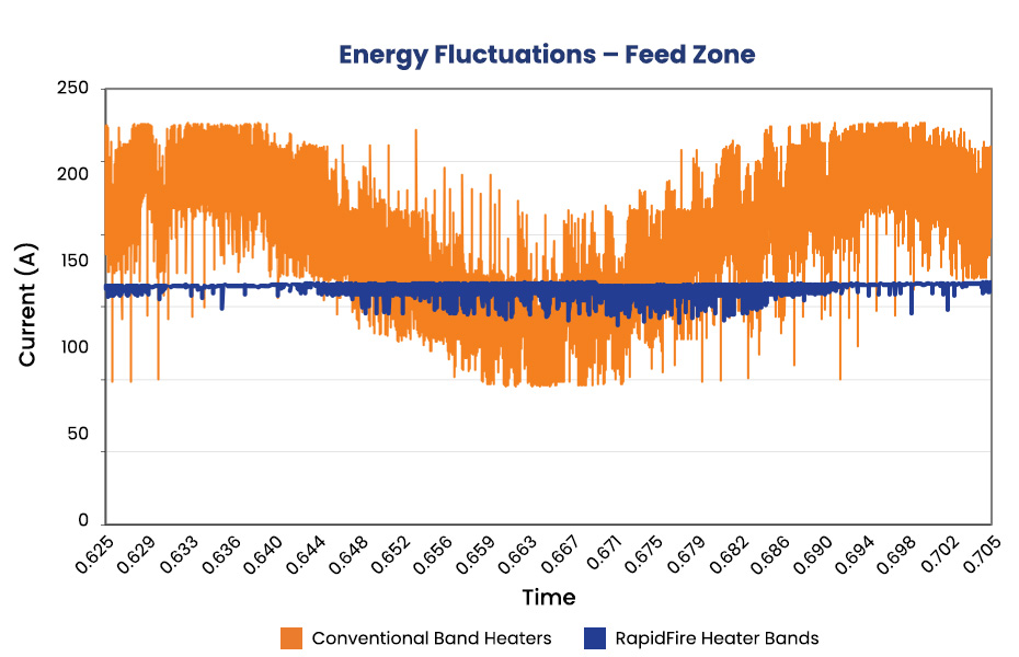 RapidFire Heater Band technology employs radiant heat in addition to thermal containment to control and direct heat straight into the melt rather than into the factory, like traditional heating systems. The result? Reduced operation costs. Energy savings. And so much more.