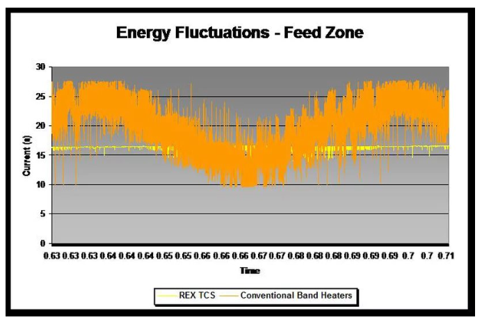 Quicker Response Time combined with More Efficient Energy Transfer (to the melt) Substantially Reduces Temperature Fluctuations.