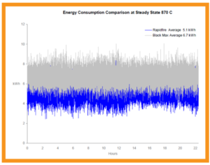 RapidFire® elements, a new and patent pending product, employ light gauge heating wire to reduce thermal mass. Our proprietary design, material and insulation provide great radiant energy transfer and longer life while saving energy and having a lower shell temperature. RapidFire elements reach operating temperatures faster, and cool down in less time than traditional elements. The supply voltage can be tailored to existing low voltage through full line voltage. Maximum operating temperature is 1150ºC.